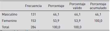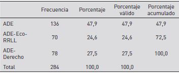Una vez obtenidos los cuestionarios completados de forma correcta y anónima, se procedió a su recuento y clasificación por sexo y titulaciones, obteniendo una muestra conformada por 284 cuestionarios válidos (tablas 2 y 3).