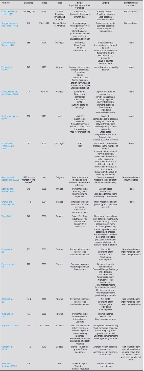 Firstly, we describe the literature on branch efficiency after the seminal survey of Berger and Humphrey (1997), and secondly, we summarize the findings and their importance for this study. The literature related to banking system efficiency, by opposition to bank branches efficiency, continues to be more extensive. For a very recent and exhaustive discussion of the former literature, see Asimakopoulos, Chortareas and Xanthopoulos (2018).