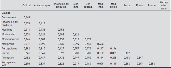 Adicionalmente, se analizó que no se presentara una varianza significativa entre las diferentes variables que podrían tener el mismo significado, lo cual se puede observar en la tabla 3. Para este análisis se empleó el Heterotrait-Monotrait Ratio Analyses (HTMT). Los resultados HTMT reflejan estar por debajo del criterio de 0,85 y es congruente según el criterio de Henseler, Ringle y Sarstedt (2015) y Hair et al. (2016), lo que indica que no se presentan problemas entre variables que podrían tener el mismo significado.