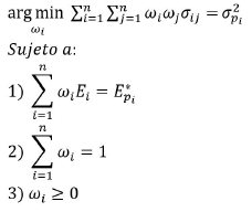 (1)Es decir, ofrece el mínimo riesgo según un nivel meta en su rendimiento esperado (E*pi).
