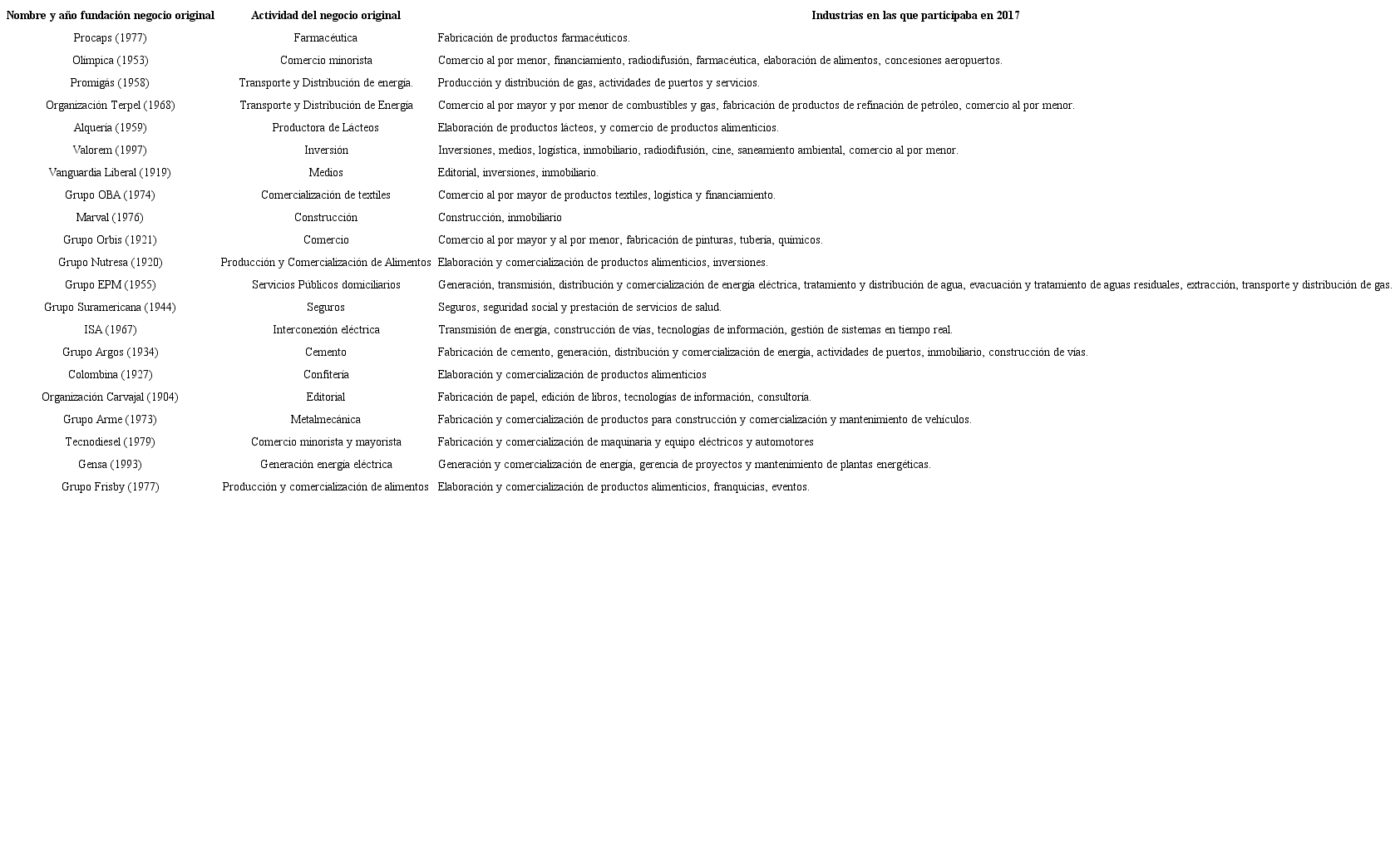 En la tabla 3 se presentan las EMN estudiadas, la fecha de fundación, la actividad del negocio original y las industrias en las que participaban en el 2017.
