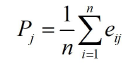 Productividad. En este criterio se propuso el análisis envolvente de datos (DEA, por sus siglas en inglés) de Charnes, Cooper y Rhodes (1978), que parte de identificar las entradas (materias primas, energía y otros insumos) y las salidas (por ejemplo productos y recursos financieros) que son analizadas para establecer pesos de esas entradas y salidas. Con estos pesos se calculan las eficiencias en el consumo de los recursos que se ubican en una matriz de eficiencia cruzada y se determina el valor promedio mediante la expresión (7), en la que Pj es la productividad del producto j en la CS y eij es la eficiencia promedio del proceso i en el producto j. El valor de Pj debe fluctuar entre 0 y 1, siendo mayor la productividad en la medida en que se acerca al extremo superior.