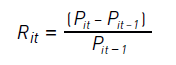 (1)Donde Rit es el rendimiento observado de la acción i durante el tiempo t y Pit es el precio de la acción i en el período t.