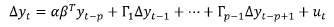 (1)Si el sistema es cointegrado, se puede especificar como el mecanismo de corrección de errores, denominado modelo vectorial de corrección del error (VECM).
