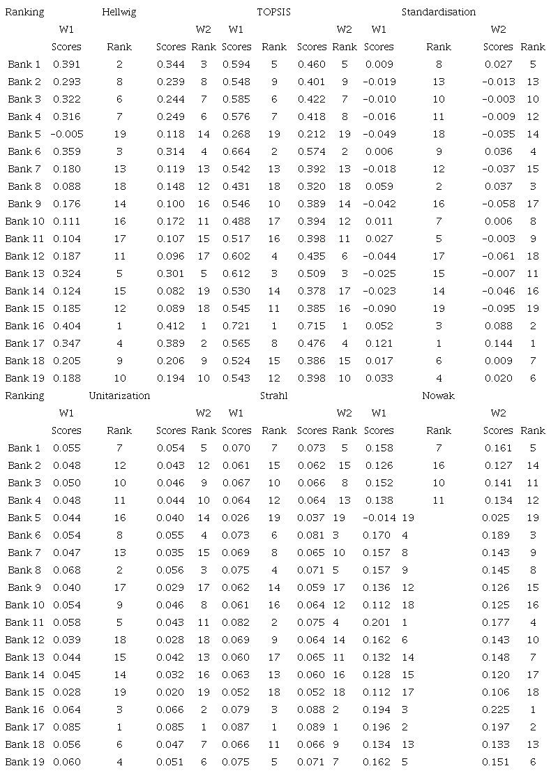 In order to do so, we employ linear ordering methods in the sequence of previous analyses, as in the case of the assessment of impact of the pandemic on the 13 largest commercial banks in Poland (Korzeb & Niedziółka, 2020). However, the aforementioned study was based on only two linear ordering methods, i.e. TOPSIS method and Hellwig’s approach. Although the linear ordering methods have been used by some authors, e.g. Hellwig (1968), Hwang and Yoon (1981) , Strahl (1978) , Nowak (1977) or Kukuła and Luty (2015) , they focused on specific individual linear ordering methods with limited procedure of double checking the results (which can be performed by the wide use of alternative approaches or by applying multi-method procedure), and those studies were not applied to the banking sector either. Meanwhile, our study is focused inter alia on the impact of the structure of bank industry portfolio on the resistance to COVID-19, since it may be decisive for NPL dynamics. In fact, Ari, Chen and Ratnovski (2020) also emphasised that the way of managing NPL portfolios seems to be crucial to the economic recovery during the COVID-19 crisis and thereafter.