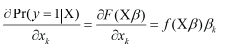 La estimación del modelo se realiza mediante máxima verosimilitud, y las estimaciones tienen la propiedad de ser asintóticamente normales, consistentes y eficientes. El efecto que tiene el cambio en una variable sobre la probabilidad del resultado puede estimarse a través del cambio parcial o marginal en Pry(y =1|X ). Dado: