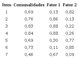 A análise fatorial ao questionário de confiança nos colegas, presente na tabela 3 apresentou apenas uma comunalidade abaixo de 0,5, o que está dentro do esperado. Apresentou também dois fatores (Fator 1: Suporte dos colegas; Fator 2: Competência dos colegas), o que difere do estudo original, onde foram obtidos quatro fatores.