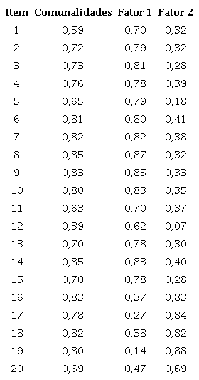 O questionário de confiança na organização, presente na tabela 2, apresentou apenas uma comunalidade abaixo de 0,5, o que está dentro do esperado. Os dados indicam a existência de dois fatores (Fator 1: Confiança; Fator 2: Desconfiança), ainda que no estudo original apresente um fator.