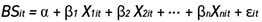 donde BSit es el verdadero bienestar subjetivo del individuo i en el tiempo t, Xnit es el valor del factor n para el individuo i en el tiempo t y εit captura las diferencias individuales al reportar.