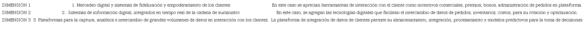 Luego de analizar cada apartado, tanto teórico como de la recolección empírica de entrevistas, se aprecian las siguientes dimensiones comunes que contiene la omni-canalidad (tabla 1).