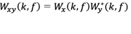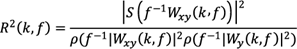 (6)Donde Wx(k,f) y Wy* (k,f) son CWT de la serie de tiempo xt e yt . El símbolo * identifica una conjugación compleja. El poder crosswavelet puede ser calculado utilizando el cross Wavelet transform como |Wxy(k,f)|. Siguiendo a Torrence y Compo (1998), el cuadrado del coeficiente de WC se expresa como:
