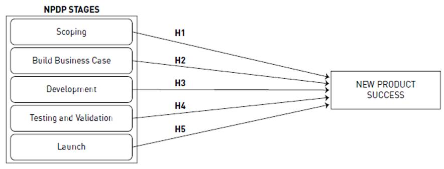The scoping stage includes preliminary market, technical, and financial assessments (Cooper, 2017). That is, first, the company must test if the new product meets the needs of the target customer. Subsequently, an evaluation of the resources needed to manufacture the new product is required, which may include the development of the concept and the definition of suppliers and products (Ulrich & Eppinger, 2016). Finally, the economic and financial viability is evaluated (Forcellini & Rozenfeld, 2006) to verify that the price of the new product covers the costs and enables obtaining the expected profit. Nevertheless, empirical evidence has shown that these preliminary activities in the early phase of NPDP or the fuzzy front-end are crucial (Dziallas, 2020) and characterized by high technical and market uncertainty (Verworn, 2009), especially in emerging countries (Seclen-Luna & Lopez-Valladares, 2020). Thus, based on these arguments, we propose the following hypotheses: