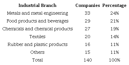 The study was limited to Lima and Callao regions because about 60% of the Peruvian manufacturing companies are there (INEI, 2021). A total of 817 mediumsized manufacturing companies were identified and defined as a population for the surveys. 140 companies sent their answers, which is equivalent to a response rate of 17%. This rate is similar to that of previous studies on the success of new product development (Souder, Buisson, & Garrett, 1997). Table 2 summarizes the sample composition by industrial branches.