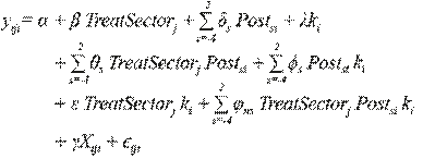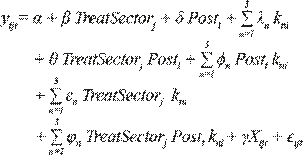 The DID approach is based on the assumption that the treated group and the control group are subject to the same trends over time. This allows us to isolate the effects of non-treatment factors by comparing post-treatment outcomes between the treated and untreated groups. Consequently, the treatment effect is determined as the average change in financial performance of the treated group minus the average change occurred in control group.