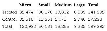 Following Gruber's (1994) , the triple difference approach, referred to as Differences in Differences in Differences (DDD), consists of comparing the change experienced by the firms of interest in the treated sectors during the pandemic period with the change experienced by the firms of interest in the untreated sectors. In a subsequent step, the above result is compared with the change experienced by the firms not considered in the treated sectors relative to the change experienced by these firms in the untreated sectors. Thus, this method provides an estimate of the average outcomes that MSEs (Micro and Small Enterprises) would likely have experienced in the affected sectors in comparison to the changes experienced by large firms in the same sectors. Simultaneously, it controls for other factors that may influence the results.