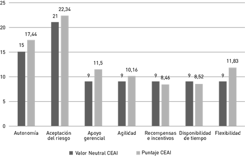 Como ya se mencionó, en la literatura sobre este tema se han identificado elementos recurrentes que están presentes en las organizaciones y que contribuyen en el impulso de la innovación (Rao y Weintraub, 2013; Kuratko et al., 2014) como apoyo gerencial, autonomía en el trabajo, recompensa y refuerzo, disponibilidad de tiempo y límites organizacionales (Hornsby et al., 2002). El Instrumento de Medición del Emprendimiento Corporativo (CEAI) se basó en estos.