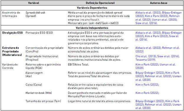 Para testar a relação entre a divulgação ESG e a assimetria de informação (H1), operacionalizou-se o seguinte modelo de regressão: