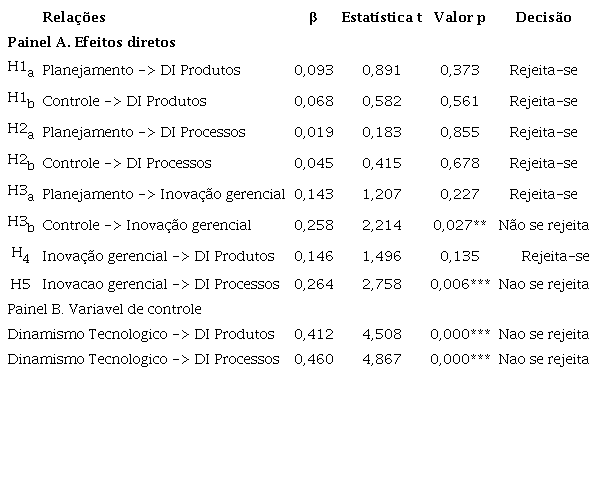 Adicionalmente, foi proposta a inclusão de variáveis de controle que poderiam influenciar o desempenho da inovação de produtos e processos. Os resultados empíricos indicaram significância estatística a um nível de 0,01. Portanto, pode-se concluir que o dinamismo tecnológico exerce uma influência significativa no desempenho tanto da inovação de produtos quanto de processos.