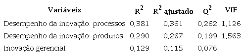 Na Tabela 6, apresentam-se os resultados estatísticos das hipóteses do estudo, os quais são discutidos a seguir. A qualidade do modelo estrutural (conforme Tabela 7) é avaliada com base no coeficiente de determinação (R2), no indicador de Stone-Geisser (Q2) e no variance inflation factor (VIF). OR2 ajustado varia de pequeno (0,02) a grande (0,26), conforme definição de Cohen (1988). Valores positivos de Q2 indicam a adequação da validade preditiva, seguindo a abordagem de Hair et al. (2019). Por fim, valores de VIF abaixo de 3,000 sugerem ausência de multicolinearidade, conforme orientado por Hair et al. (2019).