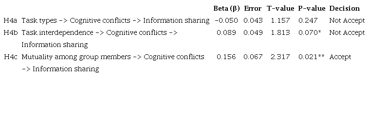 H4c: Cognitive conflicts mediate the relationship between mutuality among group members and information sharing.