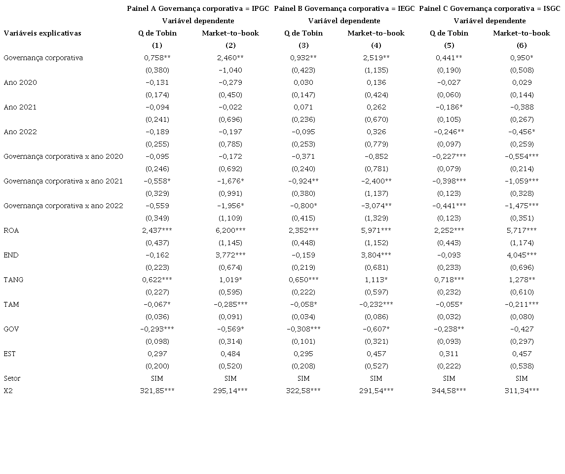 4.2. Qualidade do sistema interno de governança corporativa e valor das empresas brasileiras durante a pandemia da covid-19