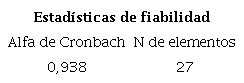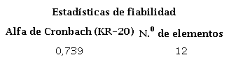 La Tabla 3 presenta el resultado del índice KR-20, equivalente no paramétrico al alfa de Cronbach, utilizado para evaluar la consistencia interna. En el software IBM® SPSS se obtiene a través del índice alfa de Cronbach.