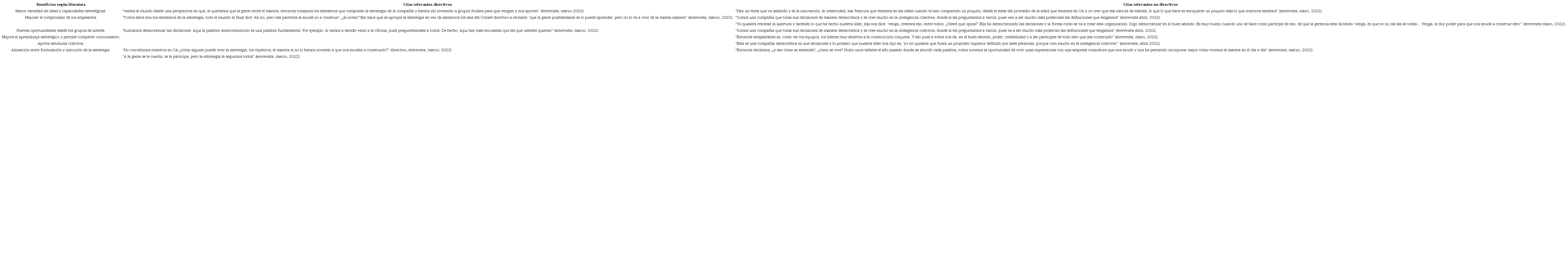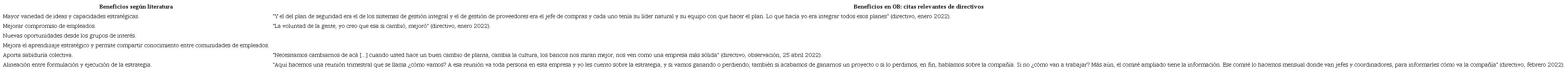 En la Tabla 3, es posible identificar beneficios de la estrategia abierta en las expresiones tanto de directivos como no directivos de la OA.