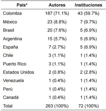 Fuente: Elaboración propia.*País de adscripción institucional de los autores