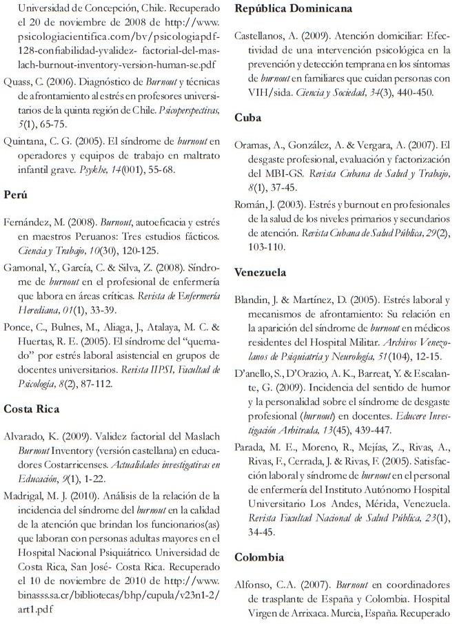 la investigación sobre el síndrome de burnout en latinoamérica entre 2000 y el 2010