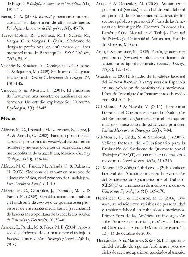 Keywords: Burnout syndrome, síndrome de quemarse por el trabajo, advances research, systematic review, Latin America.
