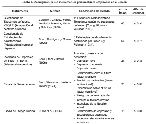 El ojetivo de este estudio fue analizar los niveles de prevalencia de depresión, desesperanza y riesgo suicida en jóvenes que inician su formación en una escuela militar de Colombia, considerando la incidencia de algunos factores cognitivos (Esquemas Maladaptativos Tempranos y Estrategias de Afrontamiento), que generalmente se activan ante situaciones estresantes como podría significar el ingreso a una institución militar (Ribeiro, Dos Santos, Cazassa, Da Silva, 2014).