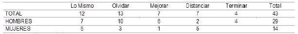 No existen mayores diferencias entre hombres y mujeres. En resumen, la opción de Terminar es muy poco asumida por los estudiantes y cuando lo hacen es en serio y la relación se Termina.