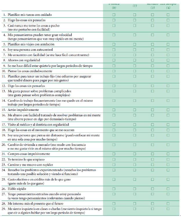 Escala de Impulsividad de Barrat-11 (Salvo y Castro, 2013)
