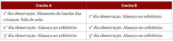 A seleção das duas creches corresponde à tentativa de comparar práticas e dinâmicas em duas instituições que têm formas de gestão e práticas educacionais com vieses particulares, o que se expressa nas ações e dinâmicas identificadas.