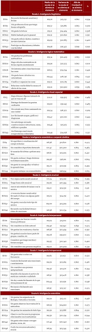 Palabras claves: escala de habilidades, múltiples inteligencias, psicometría.