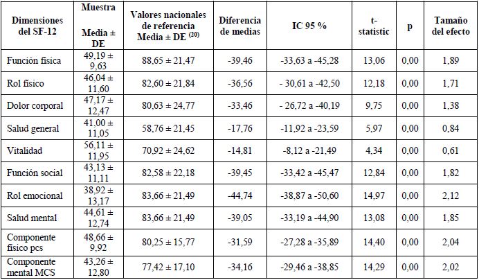 17. Vera-Villarroel P, Silva J, Celis-Atenas K, Pavez P. Evaluación del cuestionario SF-12: verificación de la utilidad de la escala salud mental. Rev Med Chil. 2014;142(10):1275-83.