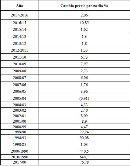 El precio promedio de la cajetilla de cigarrillos ha presentado cambios notables si se compara la década del noventa del pasado siglo con las cifras actuales. Estos cambios han estado determinados por las modificaciones en las formas de comercialización más que por el aumento del precio de las cajetillas. Al cotejar los años 2010 y 2011, se observa un incremento del precio promedio de la cajetilla de 6,73 % debido a la suspensión de la distribución de cigarrillos mediante el consumo normado a precios bajos. El aumento de las ventas en CUC produjo un incremento de 2,06 % en el año 2017, en comparación con el 2016 (tabla 4).