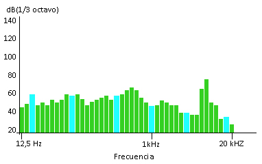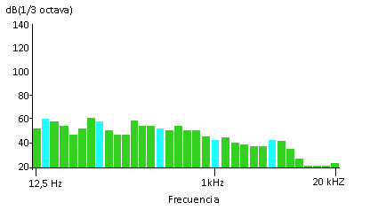 Un espectro de bandas de tercio de octava de una muestra horaria de sonido a las 10 de la noche parece estar principalmente compuesta por frecuencias bajas y medias de audio como es mostrado en la figura 1. Esto es puramente ruido de fondo cosmopolita sin contribución sensible de fuentes locales. Es visto que no aparece energía importante relacionada con la alta frecuencia, no yace en el espectro.
