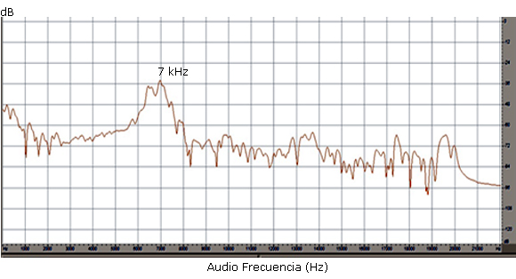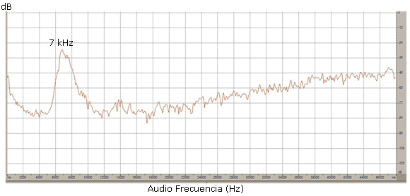 Como materia de hecho, fue posible confirmar de nuevo un tono de 7 kHz en el espectro lineal de la figura 6.