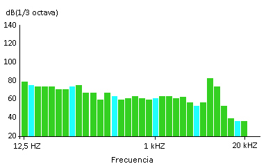 El espectro de sonido extendido como un continuo no mostró tonos en frecuencias altas del espectro audible, con una presentación lineal, de acuerdo a la figura 3. Un pico de sonido se localizó alrededor de 7 kHz.