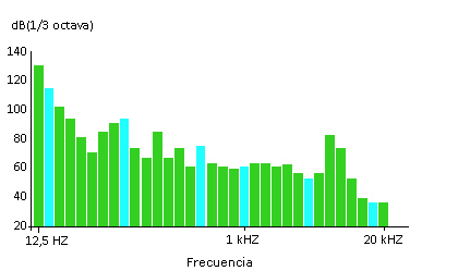 El espectro de banda de tercio de octava de un episodio de ruido que pertenece a los así llamados “ataques de ruido” posee una estructura de banda ancha con tonos en frecuencias con centros de banda de 6,3 y 8 kHz, como es mostrado en la figura 4.