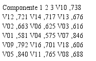 Para la extracción de los factores, se utilizó el método de componentes principales, resultando 3 factores que explican el 69,194% de la varianza total. Para mejorar la interpretación se usó el método de rotación varimax, el cual permitió identificar las variables que componen cada factor y su contribución. En la Tabla 2, se presenta la matriz de componentes rotados a partir del método de rotación varimax, y el cual ha convergido en 6 iteraciones.