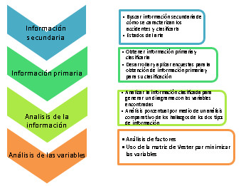 Con el fin de categorizar las variables obtenidas, se inició con un análisis de factores para reducir a las variables con mayor ocurrencia en la accidentalidad para posteriormente analizarlas a través de la matriz de Vester.