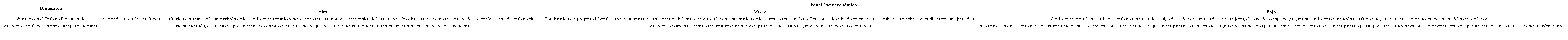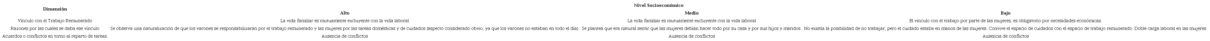 En las mujeres de niveles socioeconómicos bajos, la doble carga de trabajo de las mujeres es asumida, en parte de manera natural, quienes asumen el trabajo doméstico y de cuidados sin el planteo de una demanda a los varones.