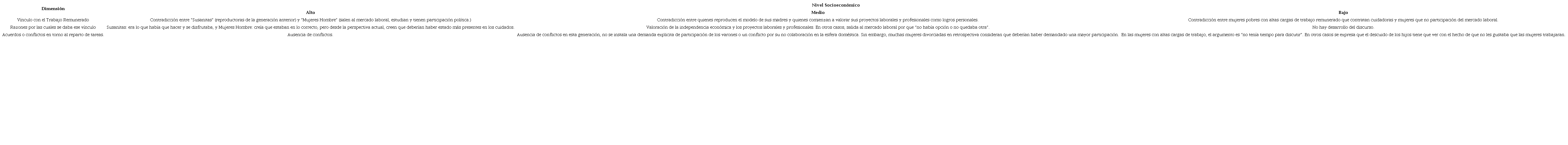 En la generación de abuelas, en los niveles socioeconómicos altos la ausencia de conflictos en torno a la distribución de las tareas se explica en parte por la presencia del trabajo doméstico remunerado y porque se consideraba inapropiado pedir que los varones que trabajaban largas jornadas fuera de la casa, realizaran tareas de cuidado.
