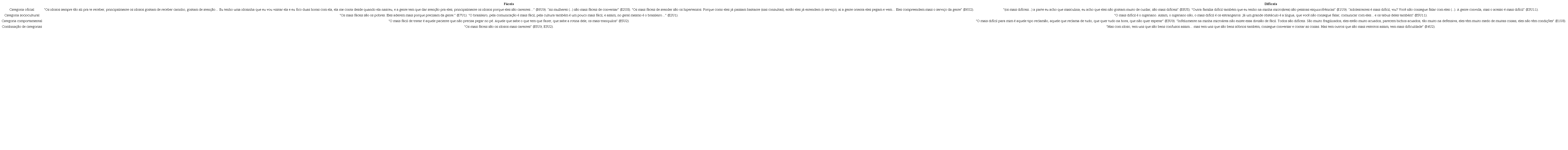 O Quadro 1 sistematiza essa interface entre os diferentes sistemas de categorização e a representação dos pacientes – como “fáceis” ou “difíceis” – construída pelas ACS a partir das suas experiências de trabalho e de interação com os usuários do serviço. No quadro são fornecidos exemplos de citações extraídas das entrevistas com as ACS.