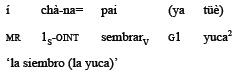 Los nombres-clasificadores (Montes, 2014) y los morfemas de atributivo/privativo14 de los nombres ligados completan el panorama de los recursos formales con los que se expresan las propiedades15. Puede considerarse que la incorporación de nombres ligados a construcciones con las formas de atributivo/privativo es uno de los mecanismos para lograr esta operación. Originalmente, tenemos formas predicativas propias de los nombres ligados que consisten en una construcción con incorporación obligatoria (sin opción de hacerla en dos palabras):