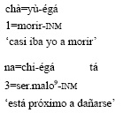 En estos casos particulares, es imposible tener una forma alterna sin incorporación como la que se tenía para los ejemplos anteriores, en 'tu cara es bonita'. Esto quiere decir que construcciones en dos palabras (como "*na-té chà-ã" y "*na-té chà-ngẽ") serían claramente agramaticales. Los morfemas de privativo/atributivo no son verbos plenos, corresponden a un tipo de predicación no verbal. El atributivo seguido del nombre ligado es una palabra descriptiva de una característica y puede entrar como determinante de un nombre libre: