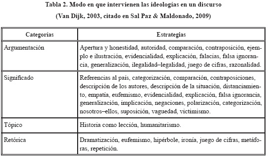 Con esa metodología, que se extiende un poco más allá, aparecen algunas categorías para observar la forma en que las ideologías intervienen en un discurso: