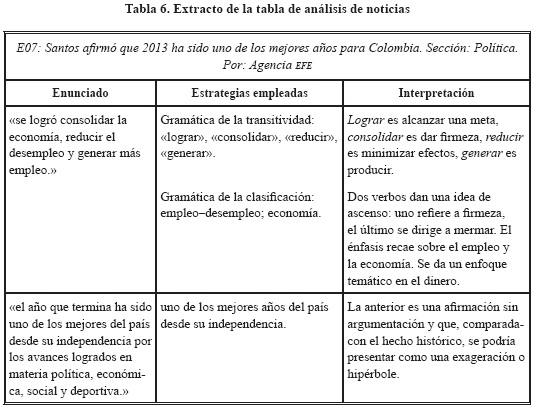A la luz de las estrategias discursivas presentadas por Romero Flórez (2000), se estableció un procedimiento de análisis de enunciados sobre las notas, a partir de la identificación del uso de alguna de estas estrategias. El análisis se complementó con los estudios previos de Kliksberg sobre el mismo tema en Latinoamérica. A esto, se sumó la teoría de Bourdieu, que permite relacionar la comunicación, el poder y la estructura social del derecho, base importante para comprender los procesos que llevan a la creación de políticas públicas.